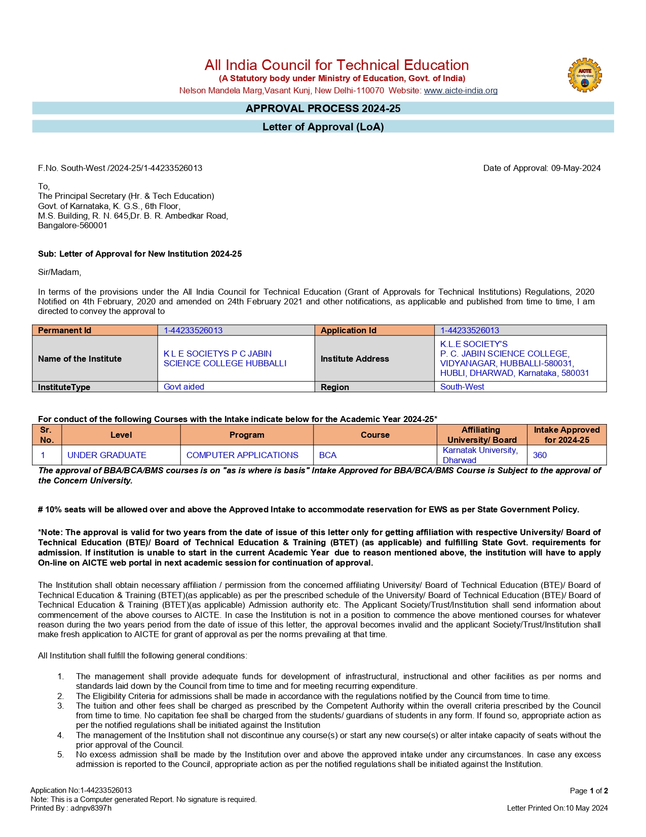 Approved by the All India Council for Technical Education (AICTE), our institution meets the required norms and standards for technical education in India.