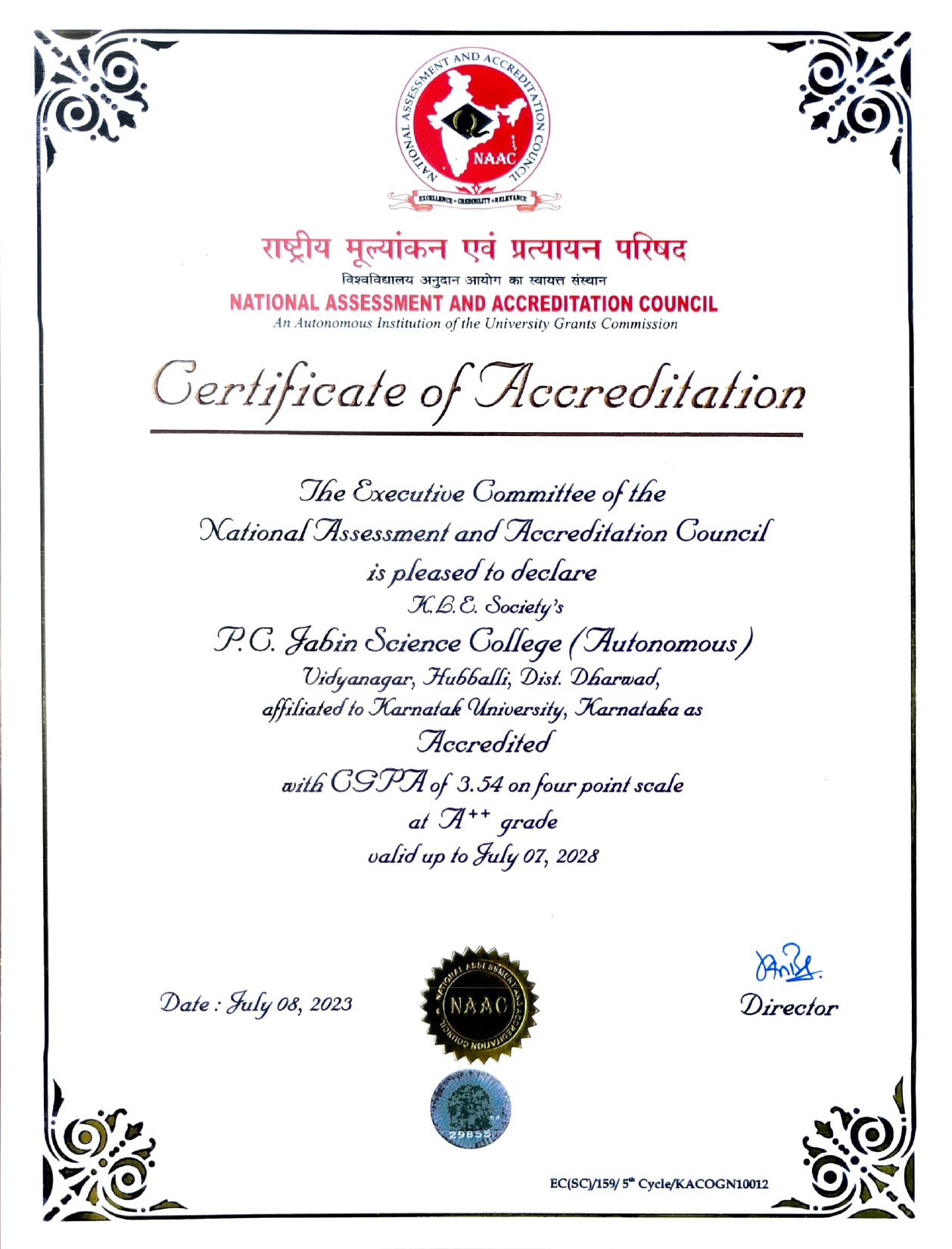 The NAAC Certificate highlights our institution's commitment to quality education and continuous improvement. It reflects our academic excellence and adherence to national standards.